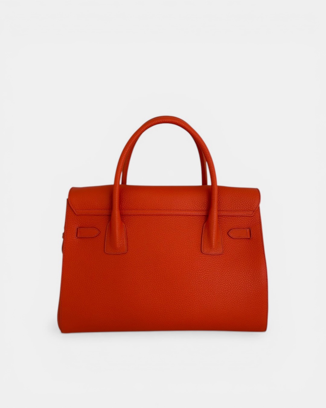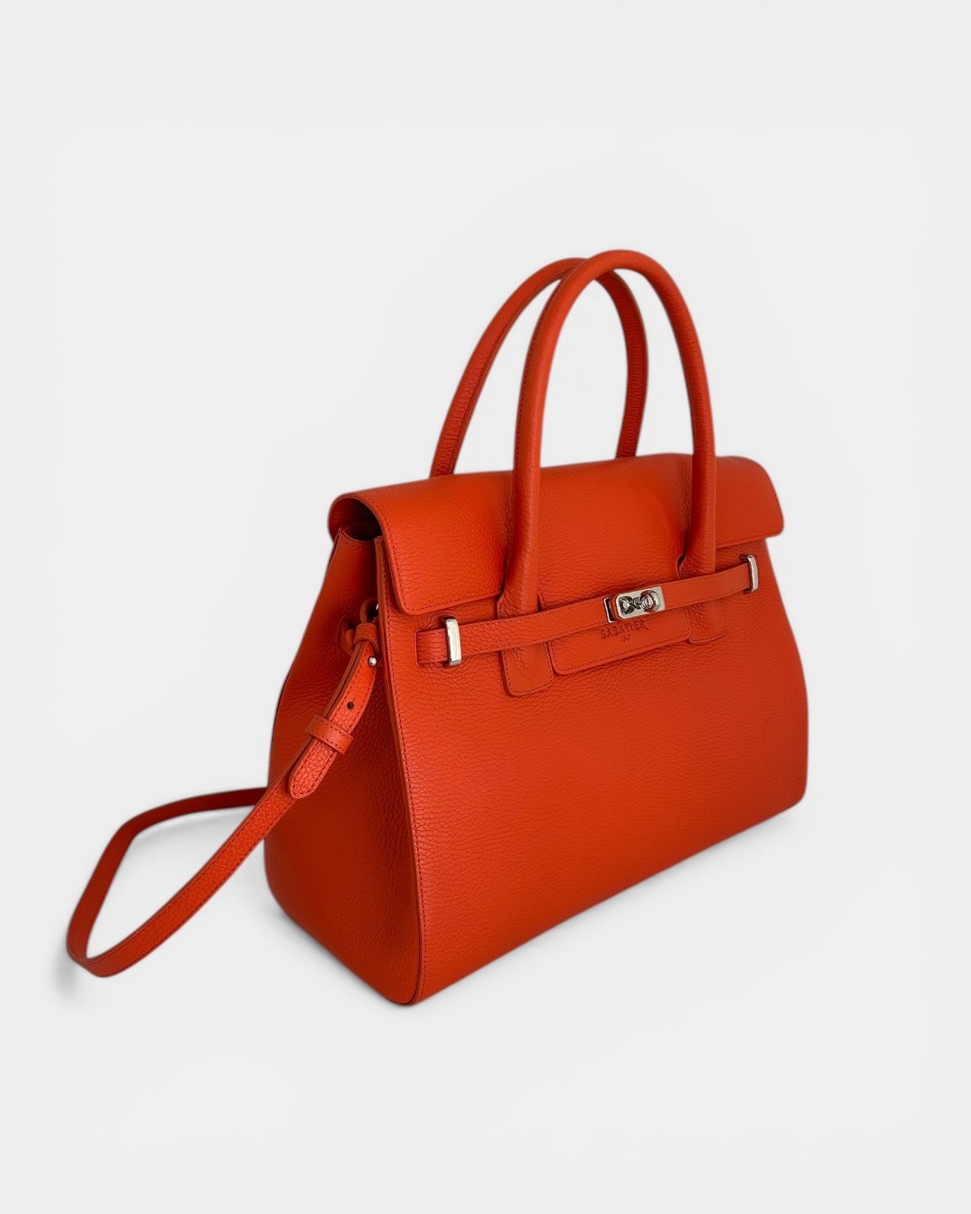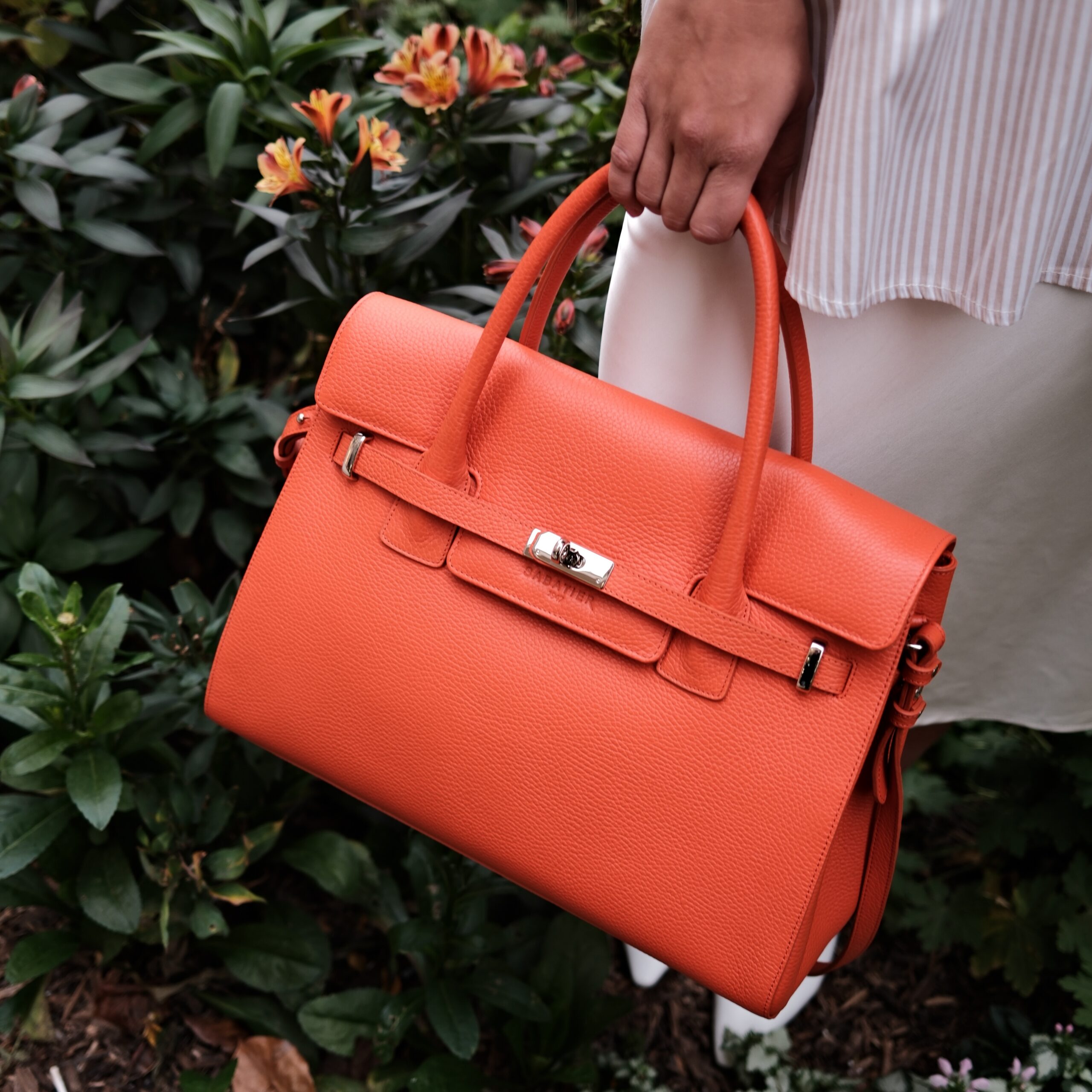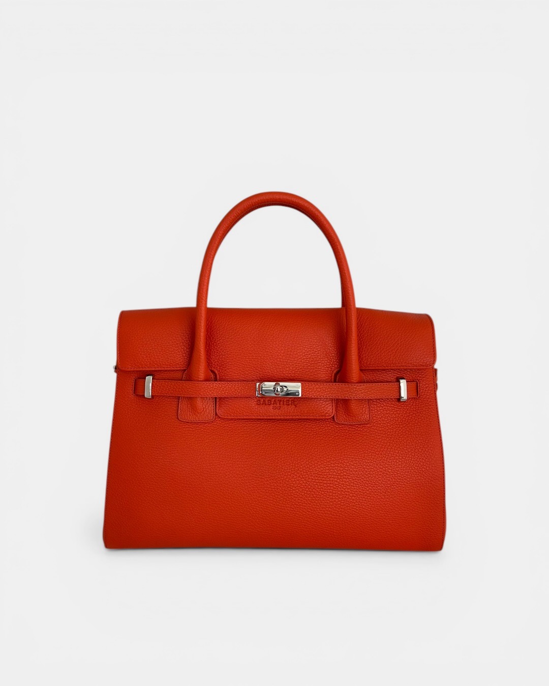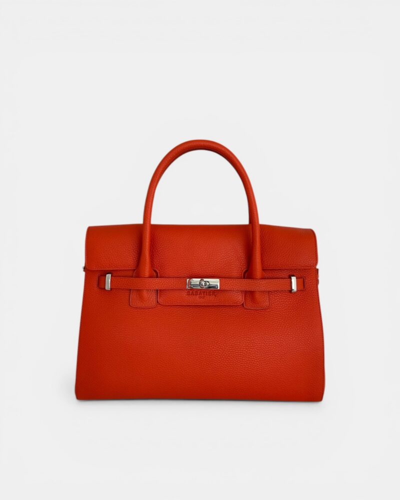 Descubra nuestro bolso 617 LOLO ORANGE - Piel granulada naranja, una creación atemporal que encarna la elegancia parisina y el savoir-faire excepcional de Sabatier1947.